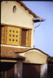 Detall d'un dels plafons ceràmics de la façana.