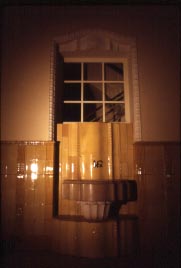 Detall del rentamans del vestíbul i la finestra del darrere.
