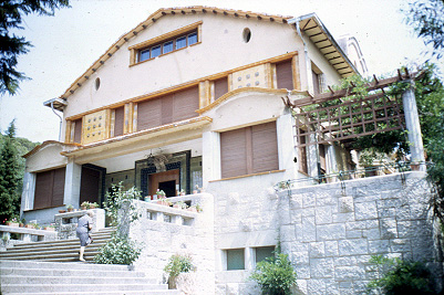 Perspectiva general de la façana principal. A la imatge és visible l'escala que porta al porxo i la pèrgola de la terrassa.