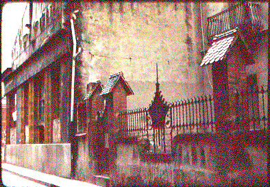 Vista de l'edifici d'Athenea abans d'iniciar-se els treballs d'enderroc. A primer terme la tanca del veí Xalet Furest.