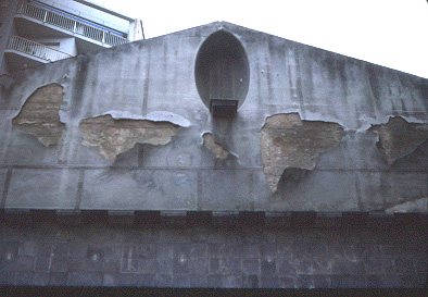 Detall del frontó de la façana d'Athenea poc abans del seu enderrroc.
