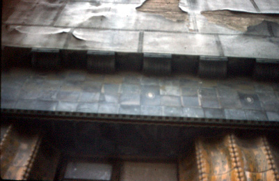 Detall del coronament i rètol de l'edifici poc abans del seu enderroc.