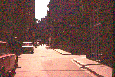 Vista del carrer Anselm Clavé durant els treballs d'enderroc de l'edifici d'Athenea l'any 1975.