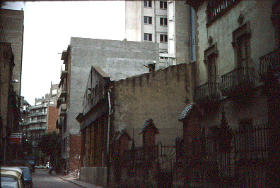 Vista del carrer Anselm Clavé abans d'iniciar-se els treballs d'enderroc d'Athenea. A la imatge s'aprecia el solar buit del ja enderrocat edifici de l'Escola d'Arts i Oficis.