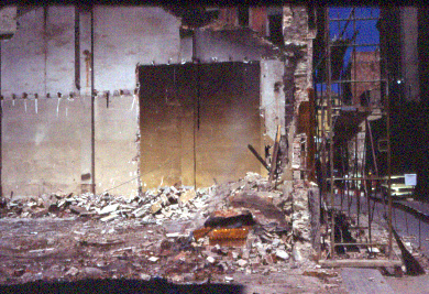 Instantània dels treballs d'enderroc de l'edifici d'Athenea l'any 1975.