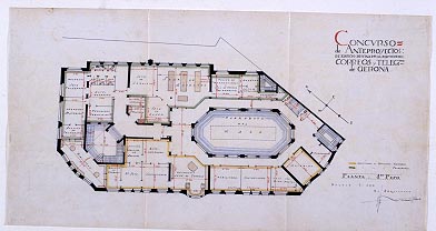 Planta del projecte presentat per Rafael Masó al concurs convocat per la construcció de l'edifici de Correus i Telègrafs de Girona.