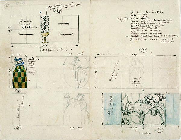 Croquis i apunts per als vitralls de la Casa Masramon.