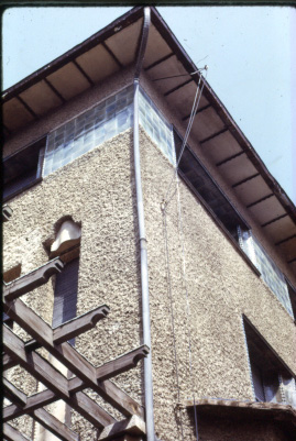 Detall de la cornisa de la façana posterior.