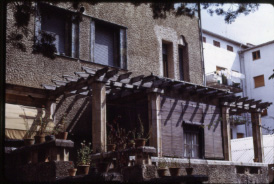 Detall de la pèrgola de la façana posterior.
