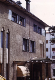 Perspectiva de la façana oest amb la pèrgola de la terrassa.