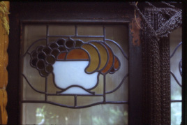 Vitrall amb el motiu del cistell de fruites realitzat als tallers de Rigalt-Granell de Barcelona.