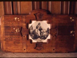 L'ebanista Miquel Pràtmans i el serraller Nonito Cadenas l'any 1905 executen el marc dissenyat per Rafael Masó per al gravat de la Sagrada Família. A la imatge s'han desmuntat els elements de forja.