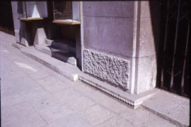 Detall del basament de la façana de la plaça Marquès de Camps.