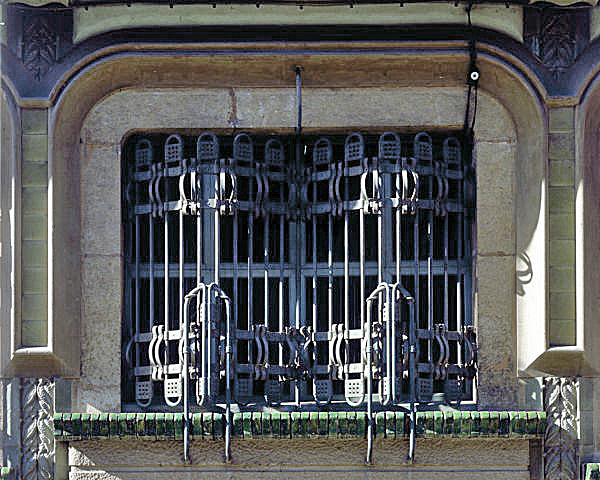 Detall de les reixes d'una de les finestres de la planta baixa, realitzades per Nonito Cadenas a partir del disseny de Rafael Masó.