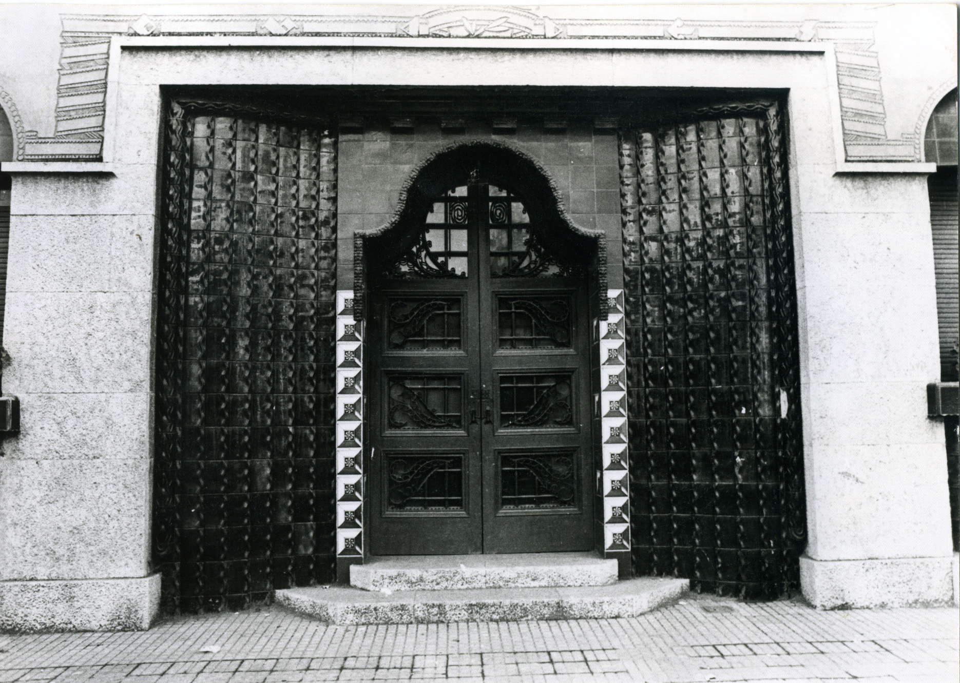 Detall de la porta d'entrada de la casa. A la imatge s'aprecia el treball de ceràmica.