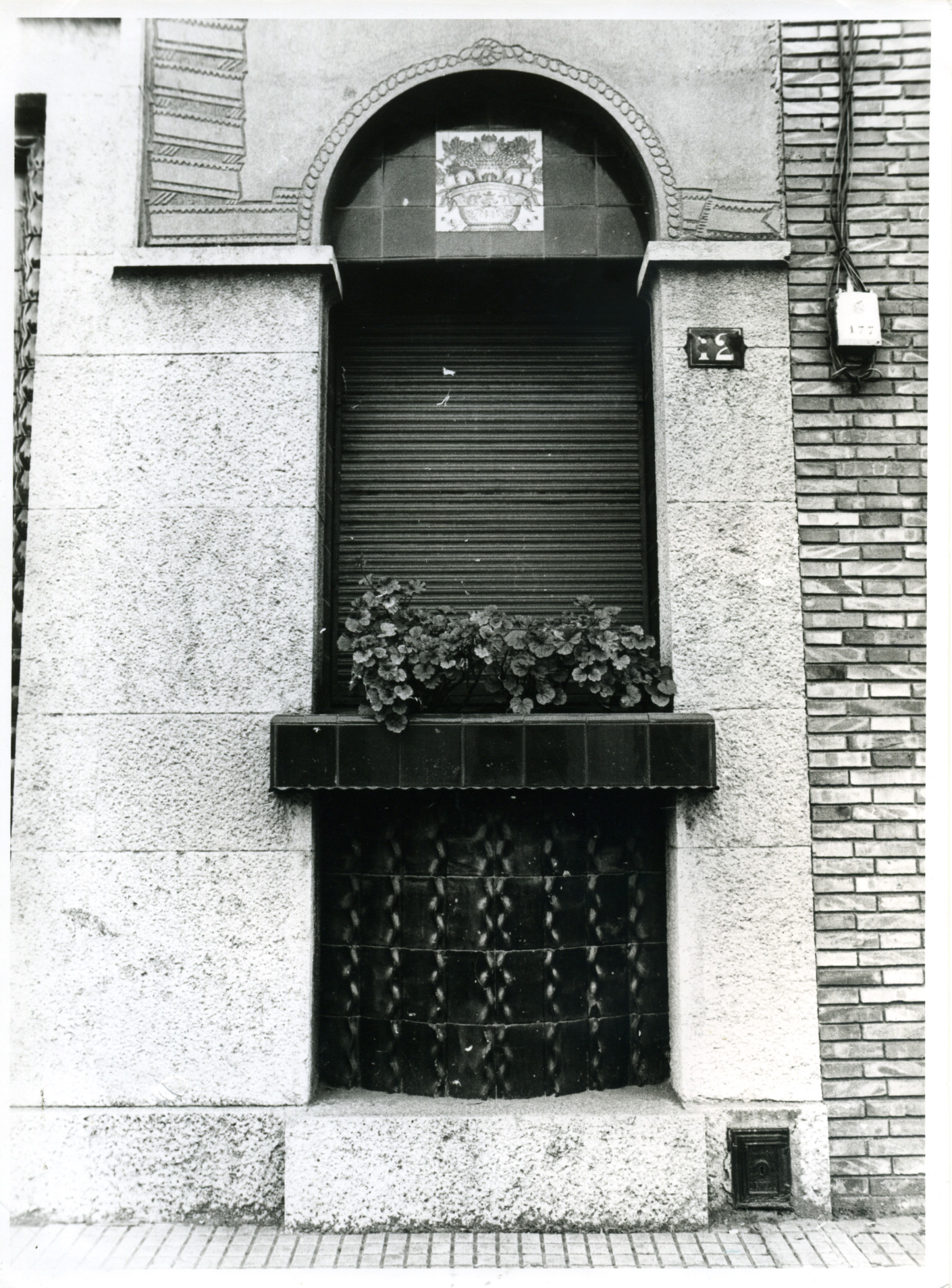 Detall d'una finestra de la Casa Omedes. A la imatge s'aprecia el treball de ceràmica i esgrafiats.
