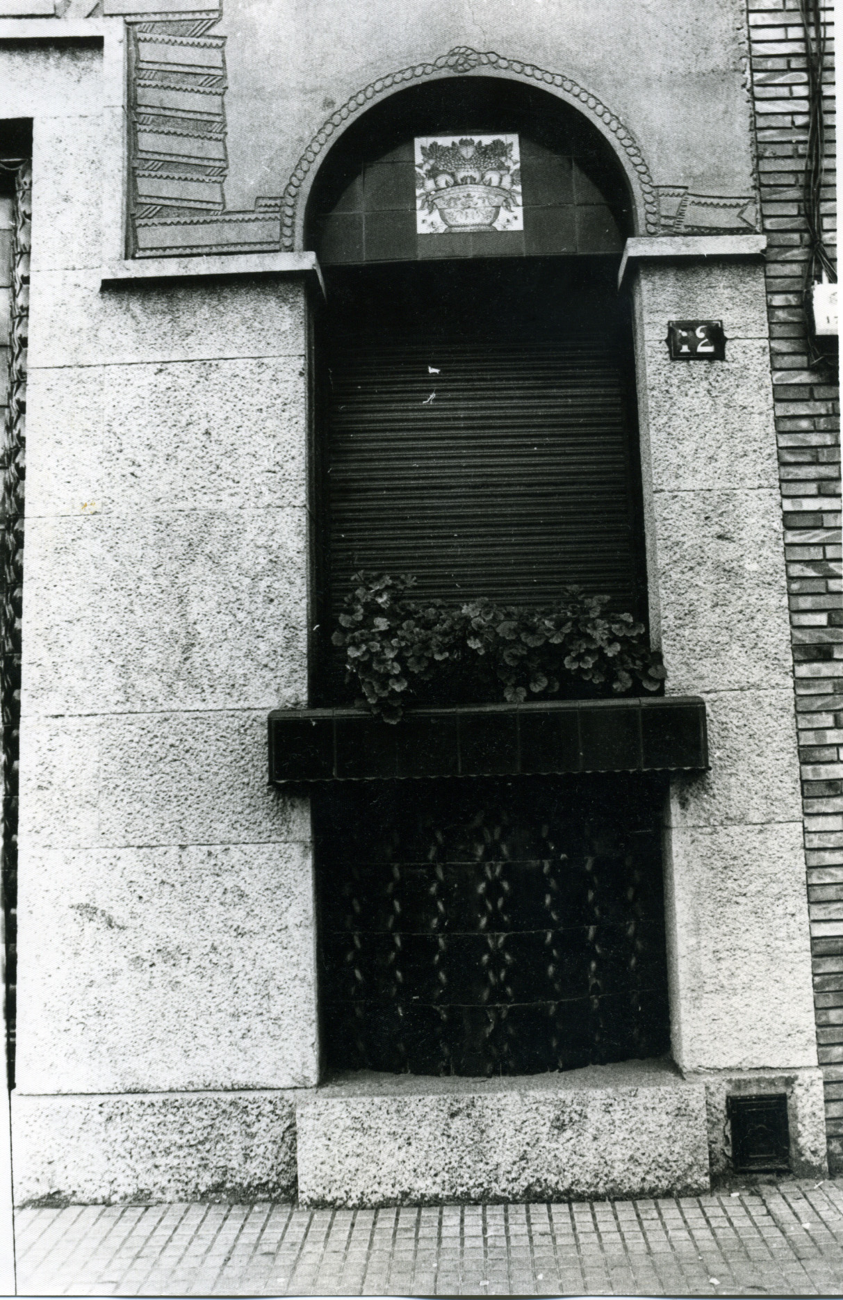 Detall d'una finestra de la Casa Omedes. A la imatge s'aprecia el treball de ceràmica i esgrafiats.