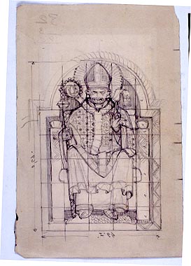 Dibuix amb la figura de Sant Narcís per al plafó ceràmic de "Sant Narcís i les mosques" de la Galeria de Bells Oficis de Girona.