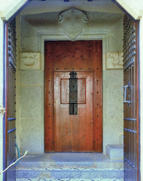 Detall del cancell d'entrada i porta interior projectats per Rafael Masó.