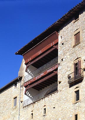 Perspectiva de la façana sud amb les dues galeries que hi va obrir Rafael Masó.