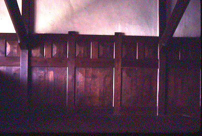 Detall de la fusta que cobreix les parets de la sala d'estar.