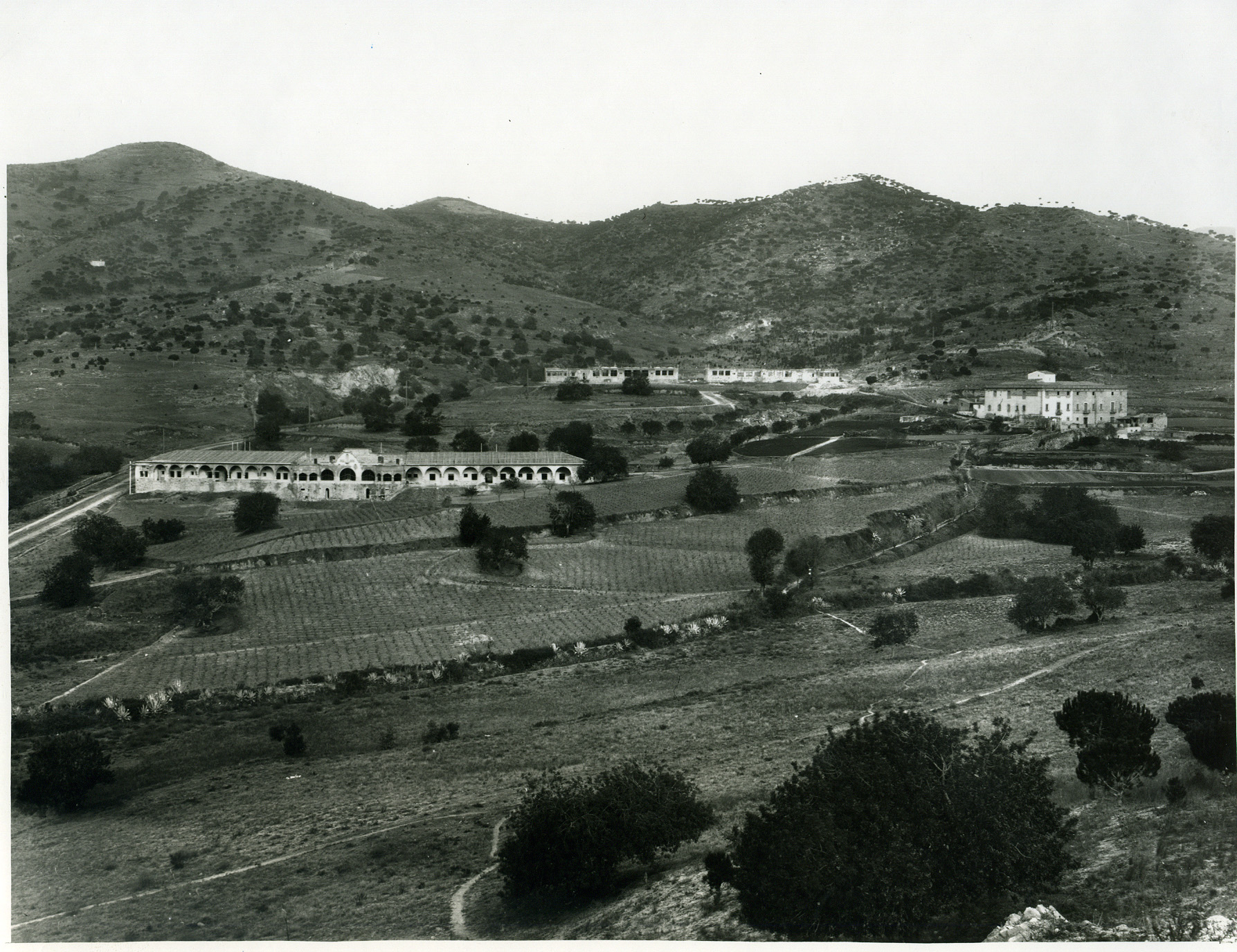 Perspectiva general del conjunt d'edificis durant la seva construcció.