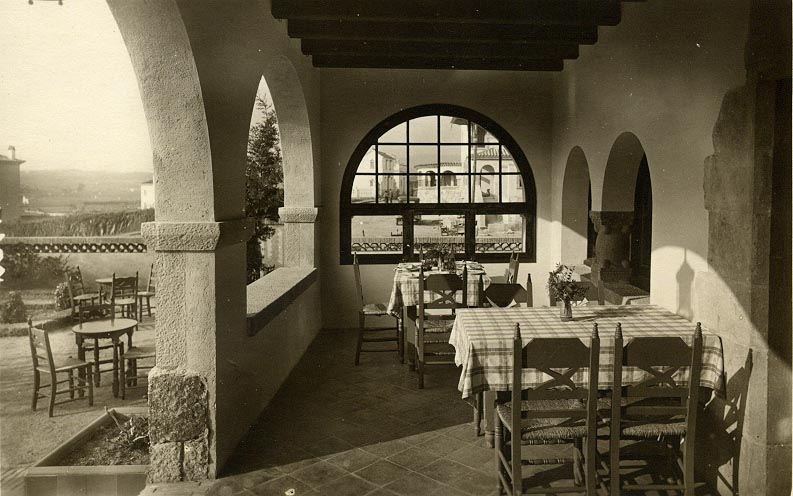 Vista de la terrassa de l'Hostal de la Gavina abans de la reforma que el mateix Masó realitza en el conjunt l'any 1934.