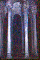 Detall de les columnes que sostenen la cúpula de l'Apodyterium, el primer espai del banys.