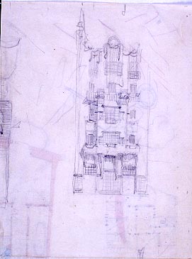 Casa Batlle. Croquis de la façana de l'avinguda Sant Francesc