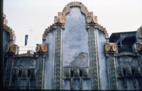Perspectiva del coronament de la façana del carrer Fontanilles amb els caracterísitics mussols realitzats per Joan Baptista Coromina.