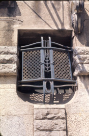 Vista d'una de les reixes, amb el característic motiu de l'espiga.