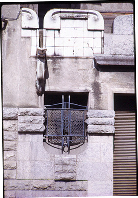 Vista d'una de les reixes, amb el característic motiu de l'espiga.