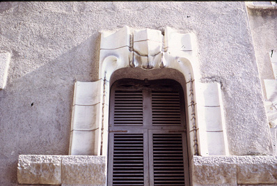 Detall d'una finestra. S'aprecia el treball de la ceràmica.