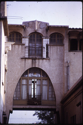 Perspectiva de l'arc que enllaça els dos cossos de l'edifici.