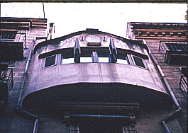 Detall de la tribuna del carrer Ballesteries.