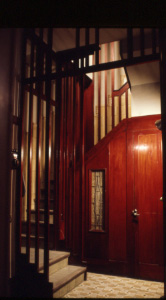 Vista de l'escala interior en el tram que comunica la primera i la segona plantes.