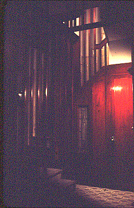 Vista de l'escala interior en el tram que comunica la primera i la segona plantes.