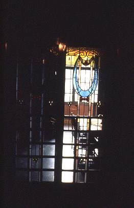 Detall dels vitralls de les portes del menjador.
