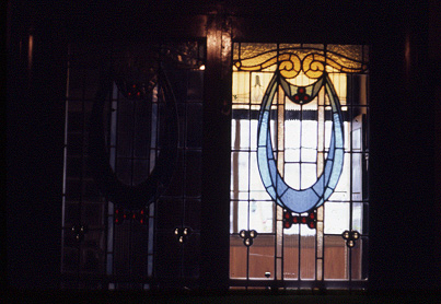 Detall dels vitralls de les portes del menjador.