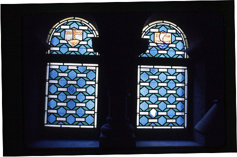 Detall dels vitralls d'una de les cambres del tercer pis.