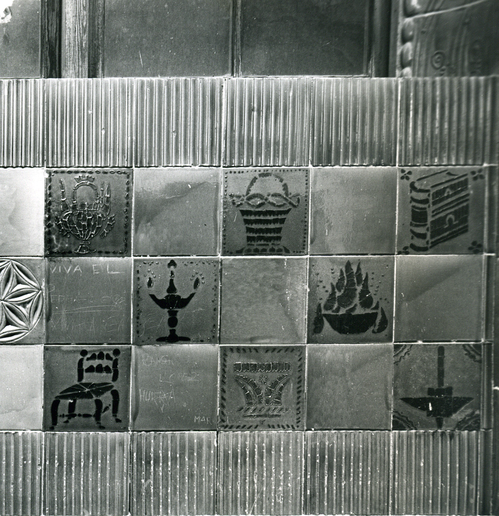 Escola d'Arts i Oficis. Plafó ceràmic carrer Anselm Clavé