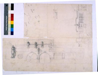Alçat del cos de l'Escola d'Arts i Oficis obert a l'avinguda Jaume I. Projecte conservat a l'Arxiu Històric del COAC.