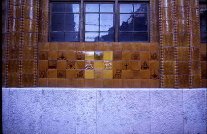 Detall de la ceràmica de la façana del carrer Anselm Clavé.