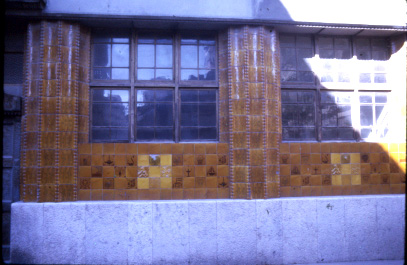 Detall de la ceràmica de la façana del carrer Anselm Clavé.